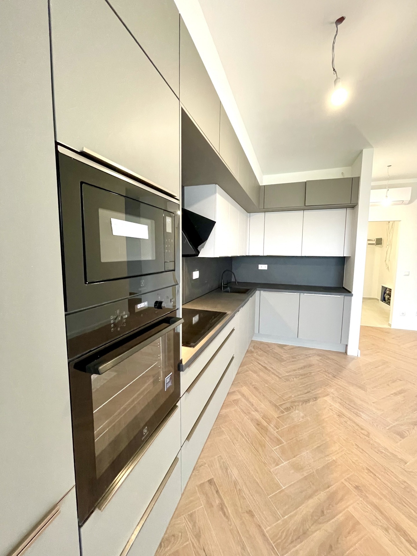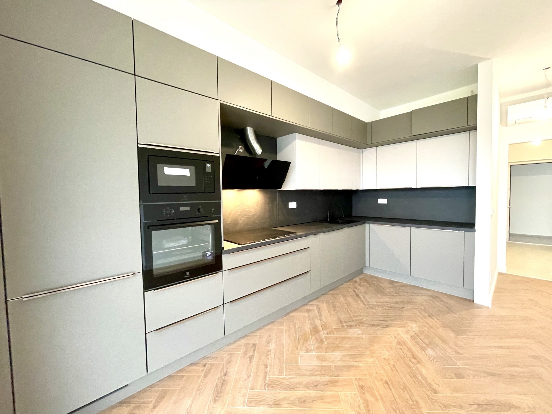 (Konyhagépei: 2 terítékes mosogatógép, konyhaszekrénybe beépített rejtett mosógép, beépített kombi hűtő, extra elektromos főzőlap design páraelszívóval, beépített mikrohullámú sütő, elektromos sütő)