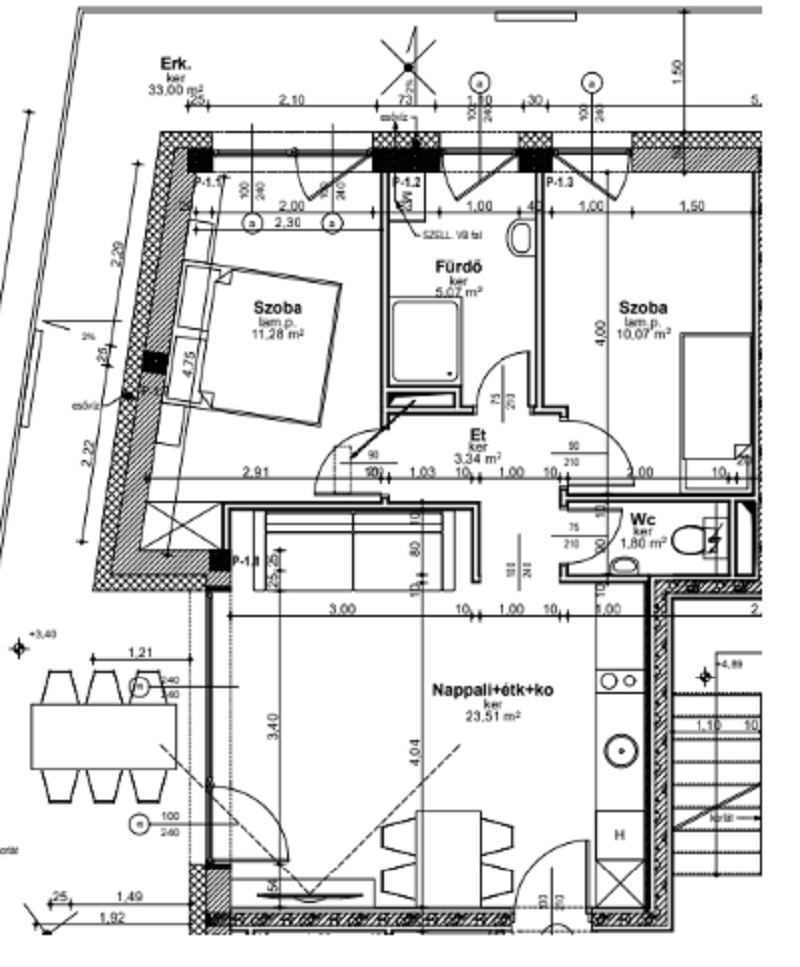 Alapterülete: 55.06 nm +33 nm részben fedett erkély kapcsolat.