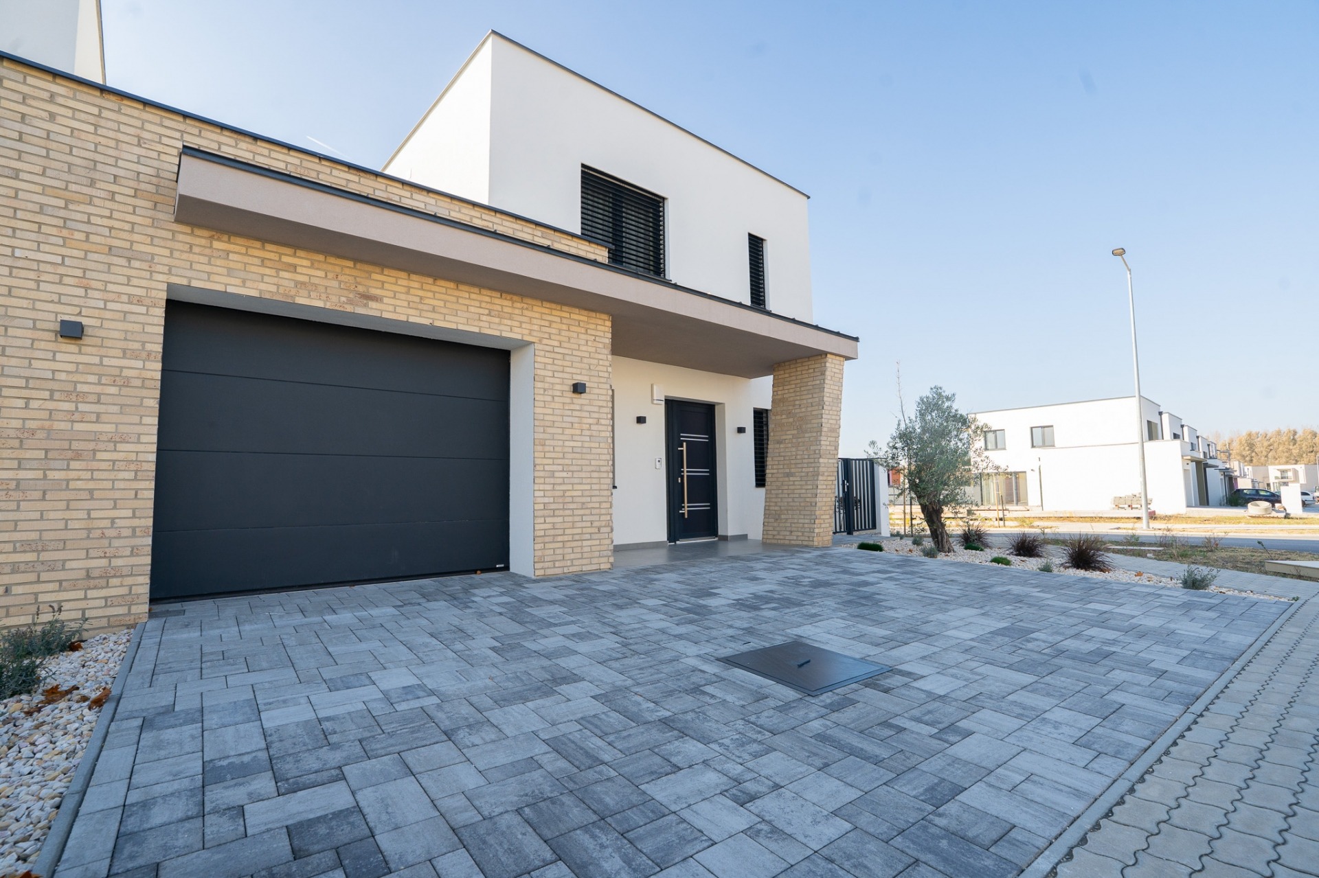 Győr–Likócson, csendes zöldövezeti környezetben, új építésű lakóparkban eladó egy igényes kivitelezésű, kétszintes sorház saját kerttel és garázzsal.