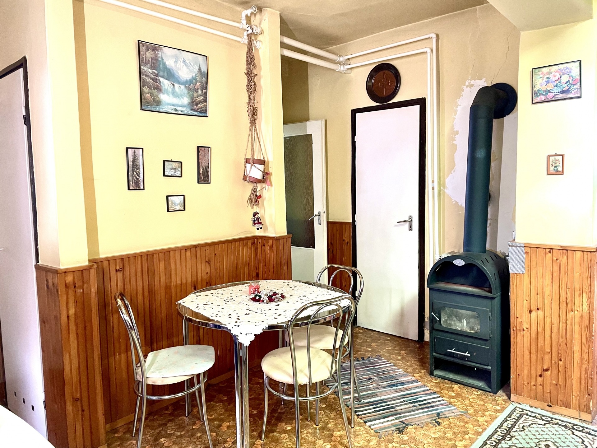 - Fűtése fa tüzelésű kandalló és vegyestüzelésű kazán, öntöttvas radiátorokkal